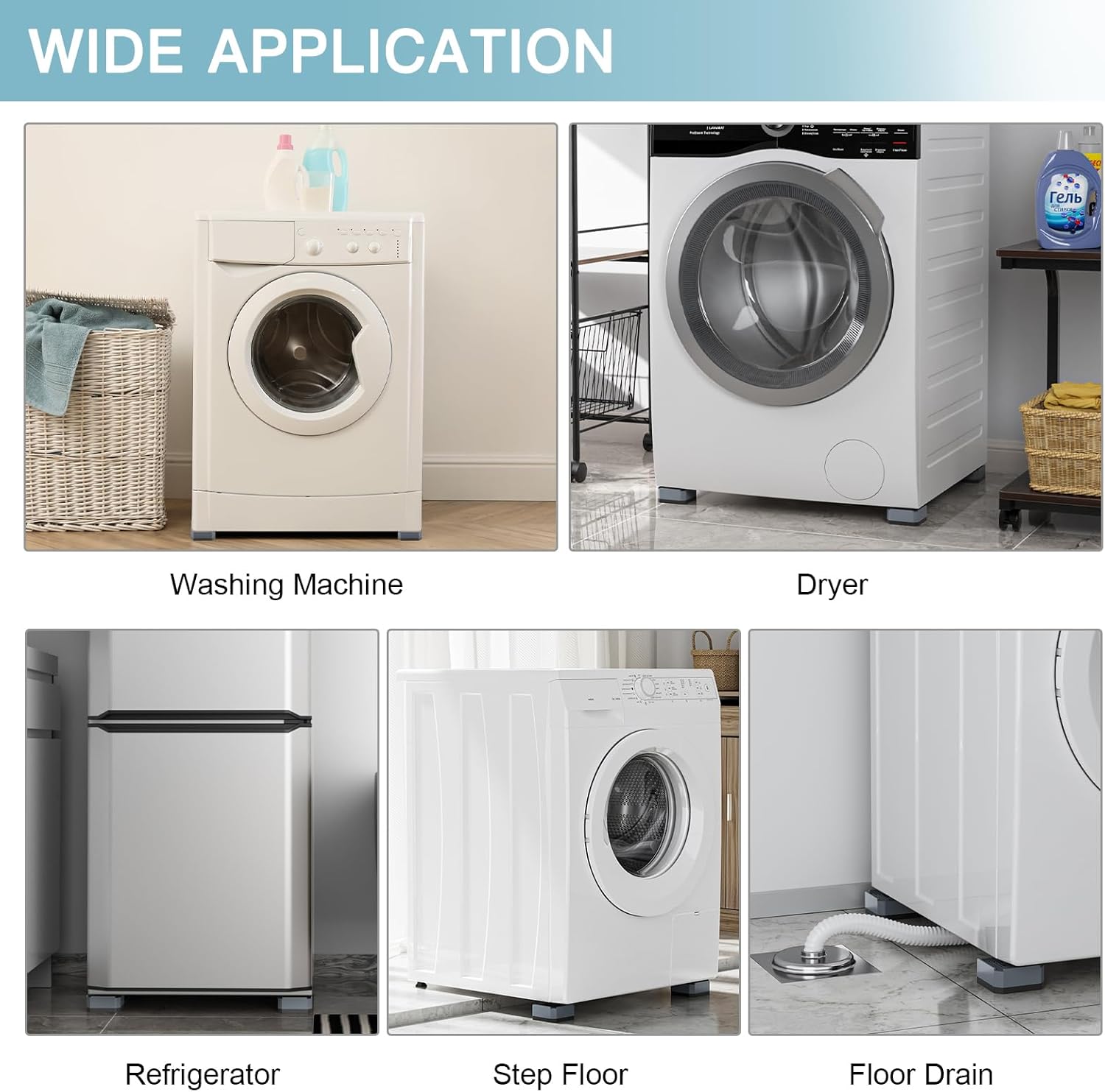 - 【 Wasserdicht & Leicht zu reinigen 】Die Antivibrationspads für Waschmaschinen bestehen aus hochwertigem, wasserdichtem Material und schützen Waschmaschinen, Trockner und andere Haushaltsgeräte vor Wasserschäden. Sie erhöhen die Gerätehöhe und erleichtern die Reinigung des Bereichs darunter – Schmutzablagerungen gehören der Vergangenheit an!