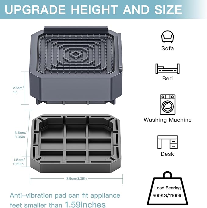 - 【 Innovatives Design 】Unsere Waschmaschinenfüße wurden überarbeitet und verbessert. Sie sind nun größer (passend für Möbelfüße bis zu 8,5 cm Durchmesser) und bieten durch die vergrößerte Auflagefläche einen besseren Halt. Bei Fragen oder Anliegen können Sie uns jederzeit kontaktieren.