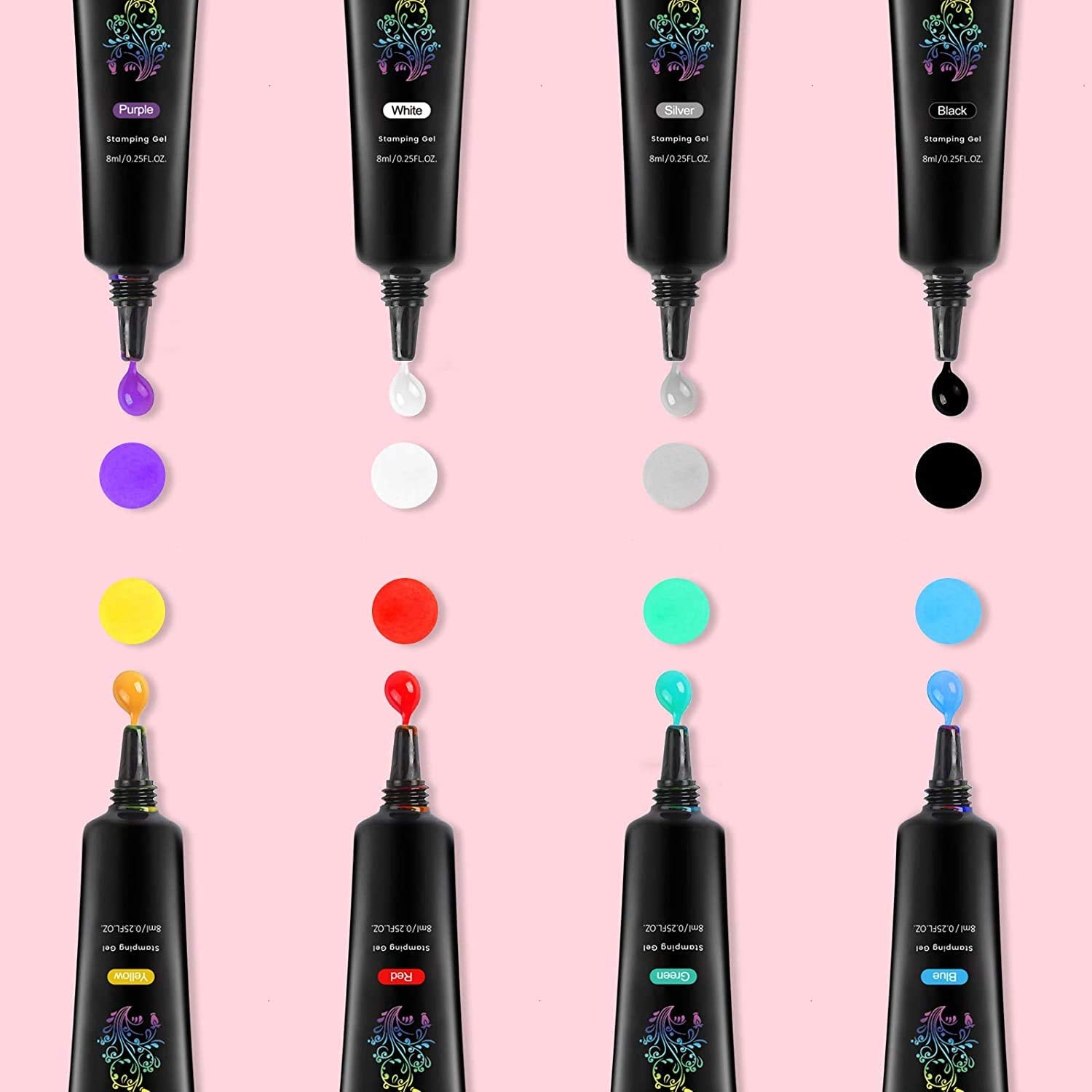 - 【Package Contents】12 colors nail stamping polish,include Black, white, gold, silver, red, green, pink, orange, rose, purple, blue, light blue.