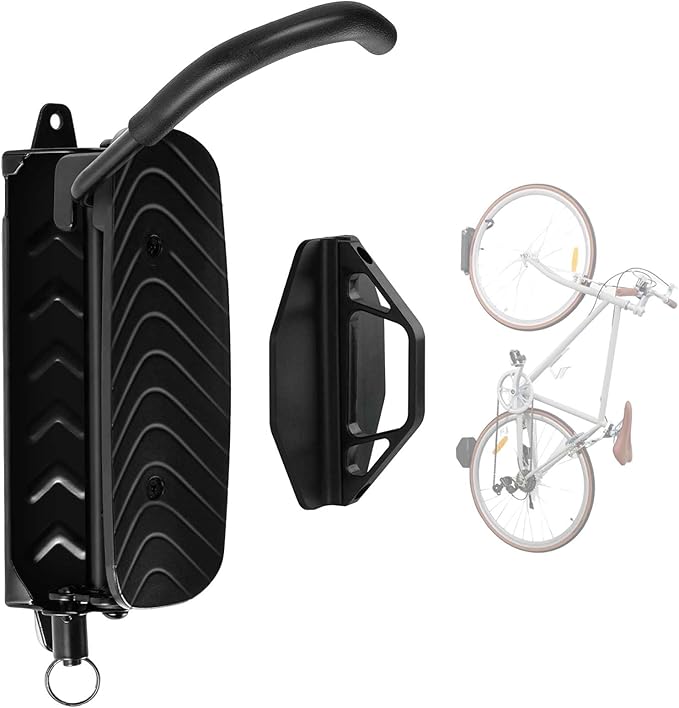 - Stable and durable: The bike wall mount is made of high-quality carbon steel, stable, durable, easy to hang and robust. NOTE: Please pull the hanging ring down before turning the bike
