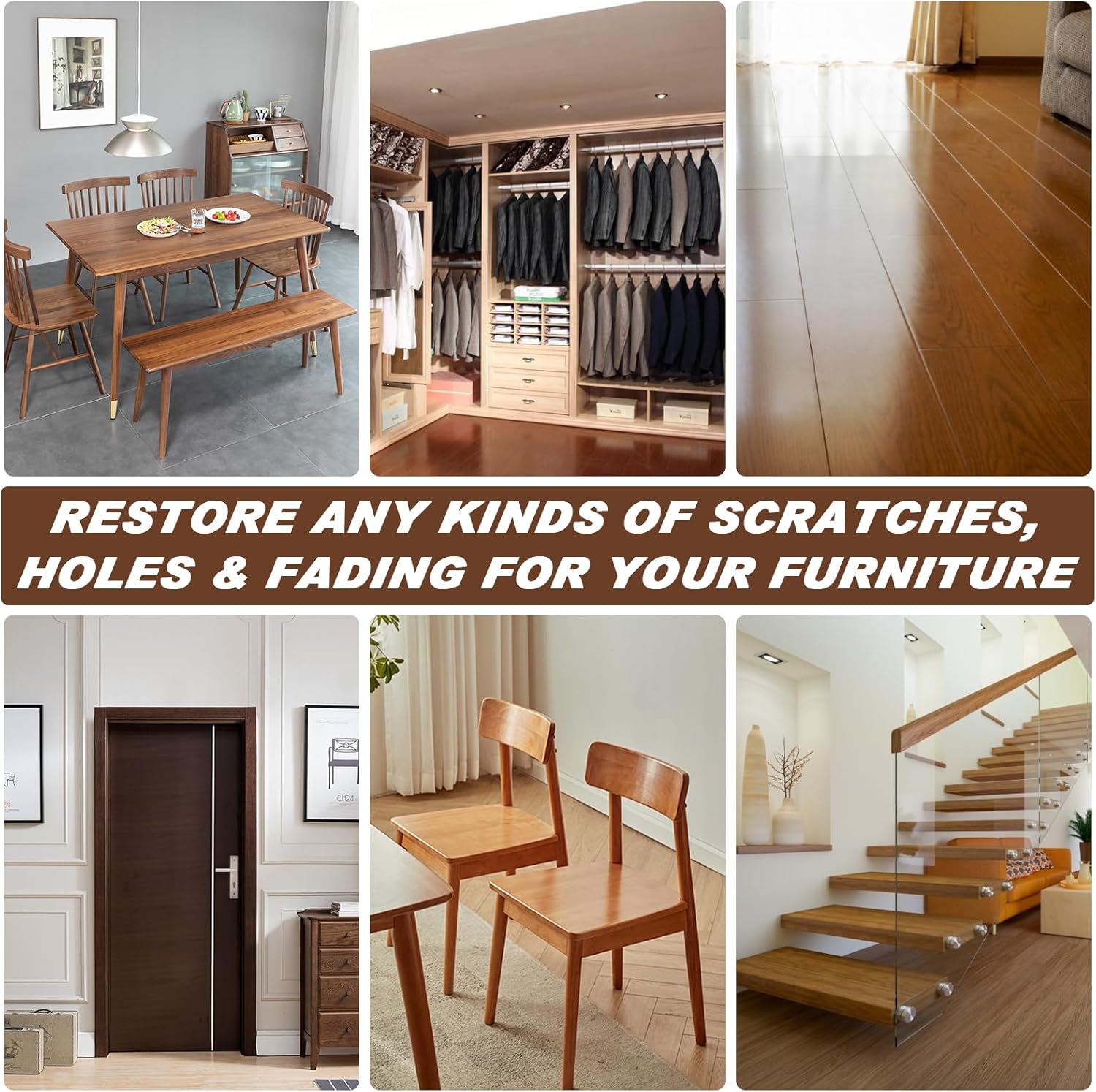 - Wide Application: This wood furniture repair kit is suitable for fixing cracks, holes, scratches, chips, and discoloration on wooden floors, doors, and furniture such as tables, chairs, beds, wardrobes, and more. After repairs, dry with a hairdryer or allow to air-dry for 2-3 days, keeping it away from water.
