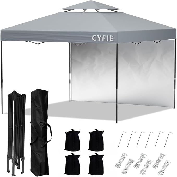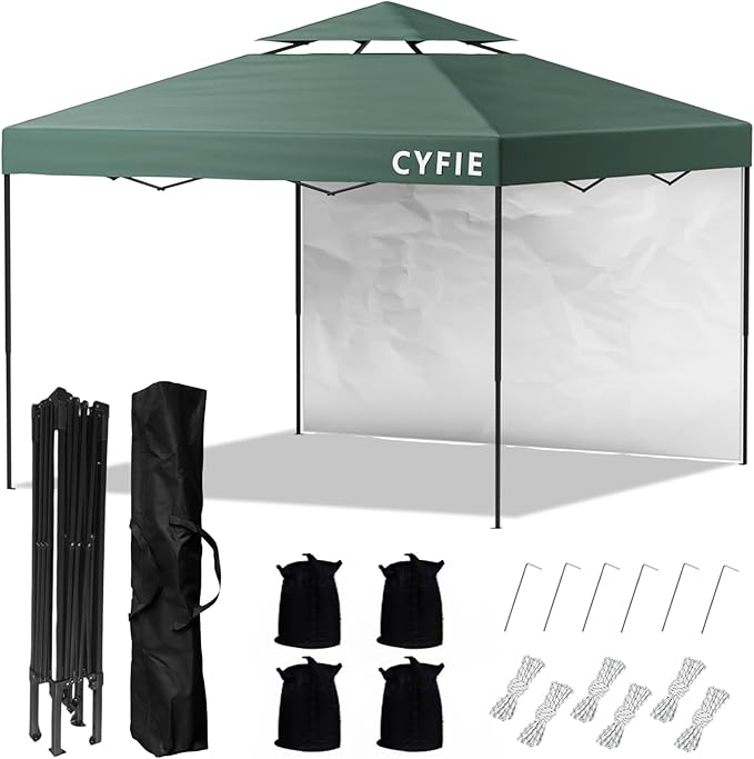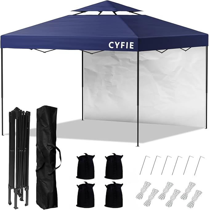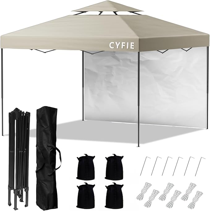 CYFIE 10x10フィート ポップアップキャノピーテント サイドウォール&サンドバッグ付き