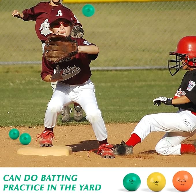 - ⭐【安全&スペース】スペースは多くありませんが、お子様はバットを力一杯振ることができ、ボールは重量と構成により空中に落ちるため、窓を突き抜けたり、車にへこみをつけたりすることはありません。庭でバッティング練習をしてもボールが飛びすぎません。