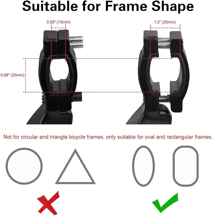 - 注意- フレームのデザインの違いにより、同じサイズの自転車でも地面からフレームの高さが異なる場合があります。ご注文前に、自転車のフレームの底から地面までの距離を測り、7.48~10.43インチ(約19.3~25.3cm)であることを確認してください。