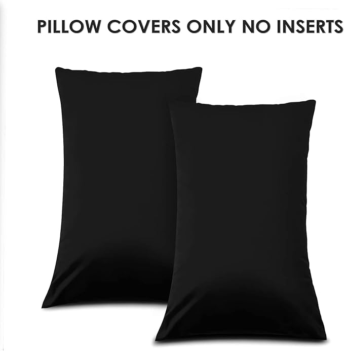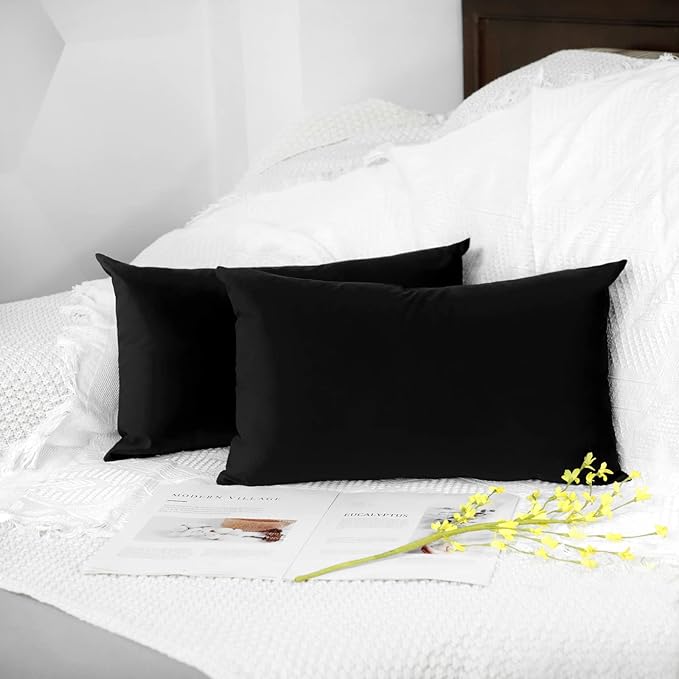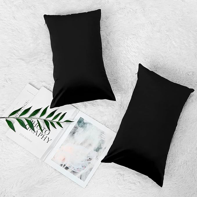 DEWEL ブラックベルベット枕カバー 2枚組 12x20インチ 装飾クッションケース