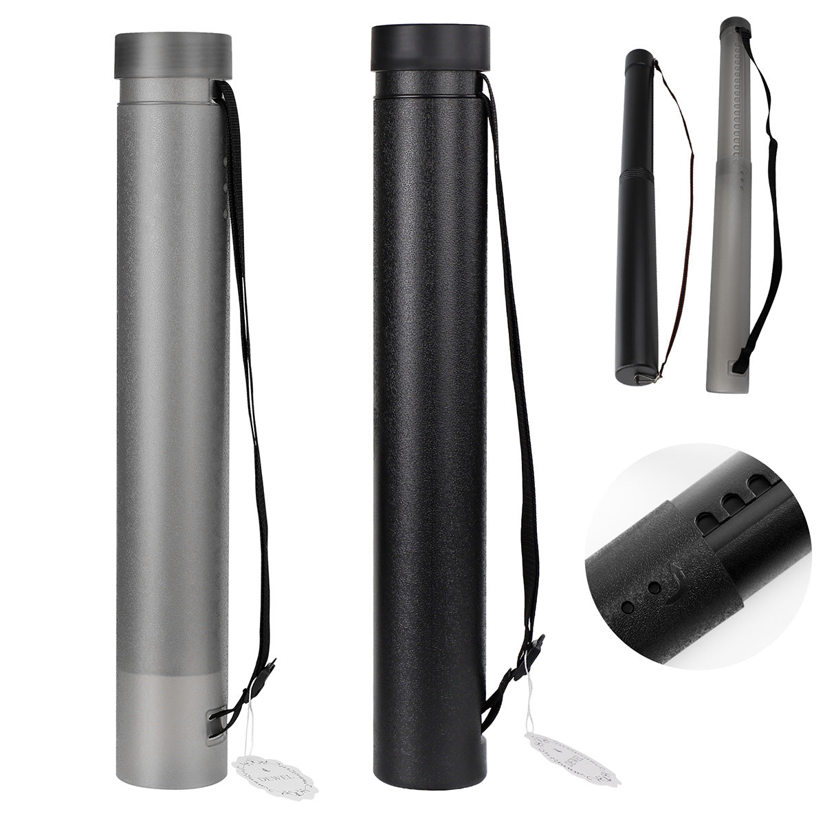 DEWEL 伸縮式ポスターチューブ 防水書類収納ケース ストラップ付き 2個パック