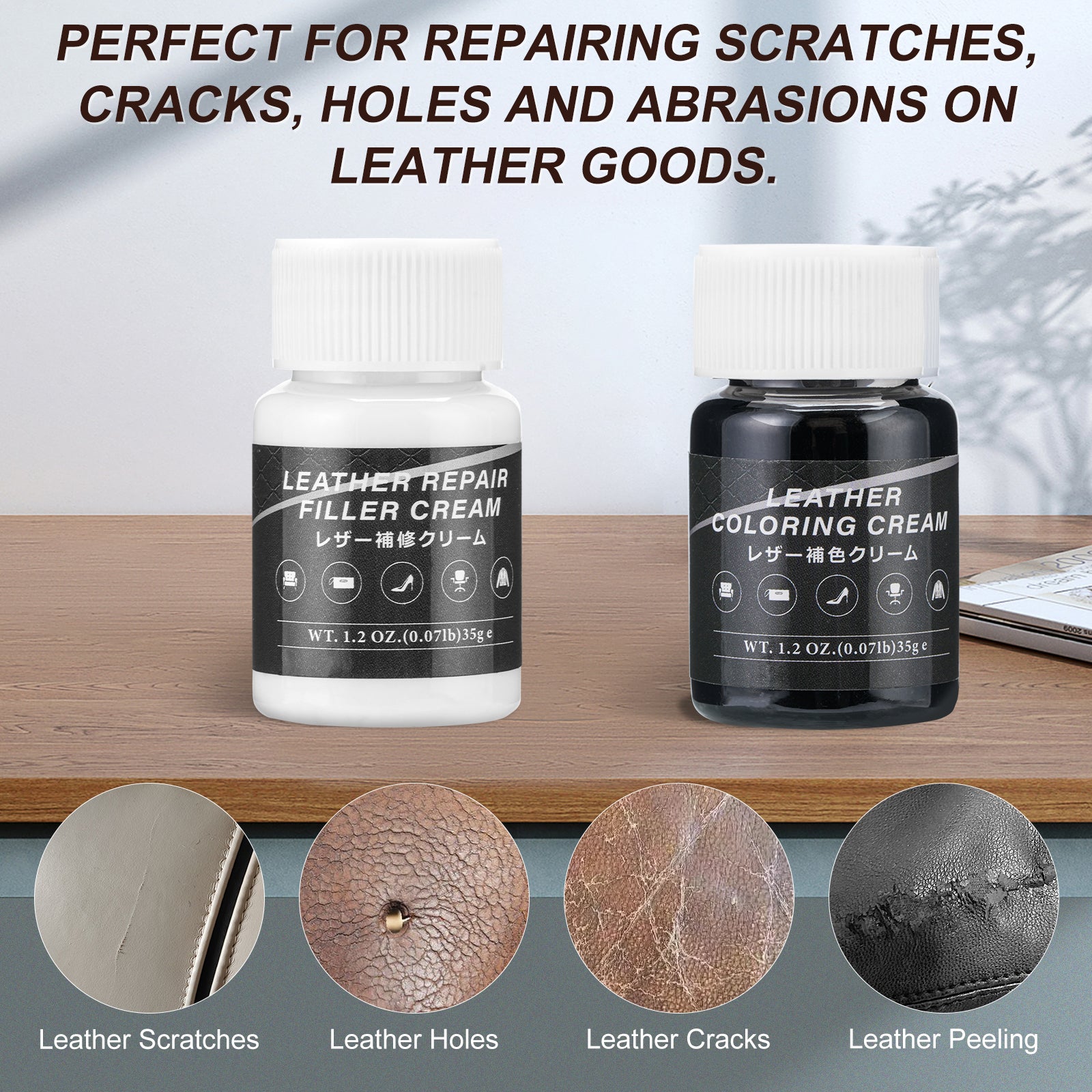 - 【ご注意】起毛革やエナメル革にはご使用いただけません。▲補修用フィラークリームは白、革補修用クリームは黒です。必ず色を合わせてください。▲補修後の革は、乾くまで触ったり、手で触ったりしないでください。