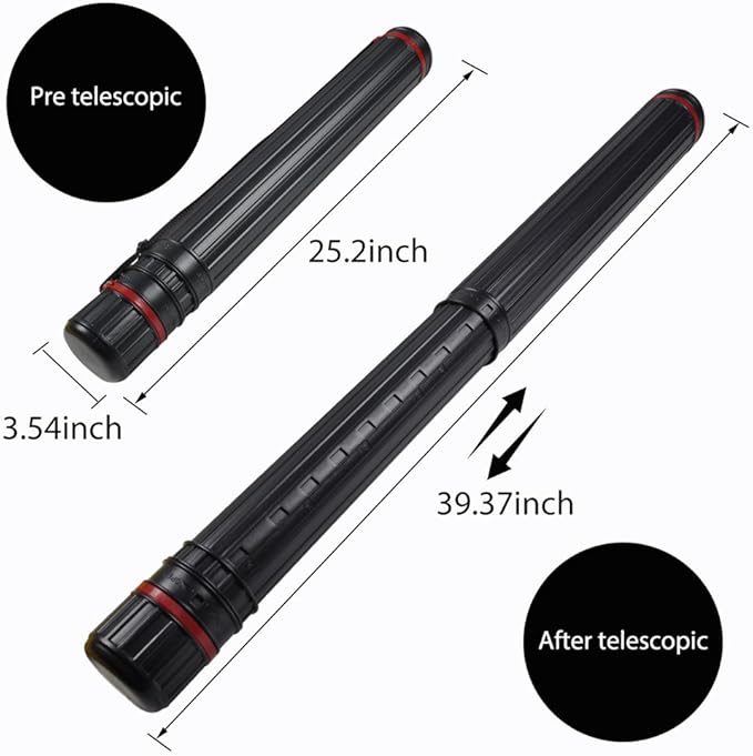 - 【 25インチから40インチ/30インチから52インチ(伸縮可能)収納チューブ】伸縮式ポスターチューブは、様々なサイズのポスターに適応するように設計されています。長さ25インチから40インチ/30インチから52インチ(伸縮可能)まで伸縮可能で、直径3.15インチ/4.72インチなので、様々なサイズのポスターを簡単に収納できます。