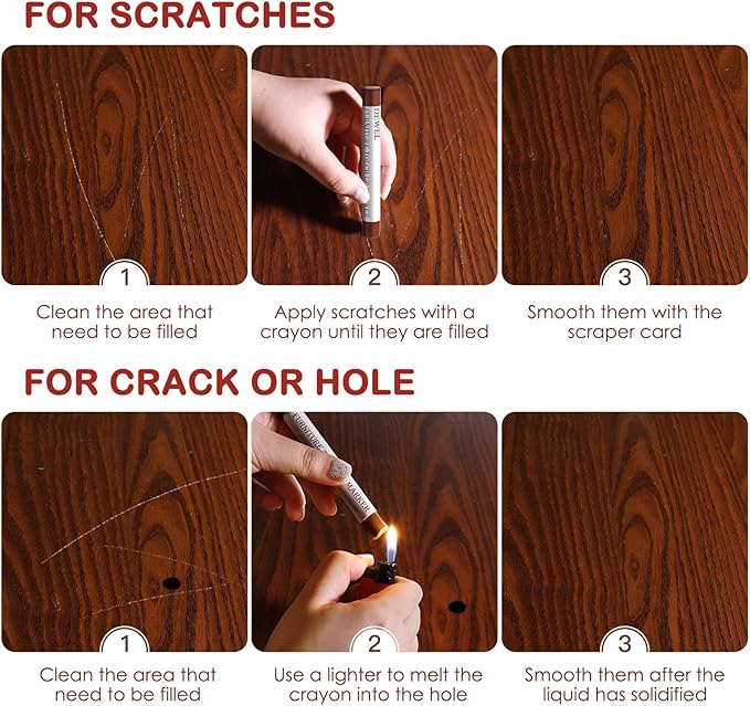 - 【幅広い用途】DEWELの家具用ワックスフィラークレヨンは、木製家具、床、キャビネット、テーブル、ドアなどの傷、擦り傷、ひび割れ、小さな穴を修復できます。