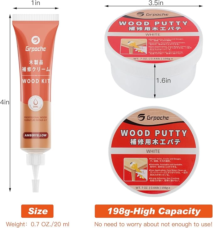 - 【機能性抜群】木材補修キットには12色の木材充填剤が含まれており、木製家具のあらゆるレベルの損傷を自分で補修できます。ウッドパテ(充填剤)は、木製家具や床の傷、ひび割れ、穴をシームレスに埋めます。木材補修フィラー(補修剤)は、木材のタッチアップペイントとして使用でき、色の調和を助け、傷や擦り傷を目立たなくし、小さなへこみやひび割れを補修できます。