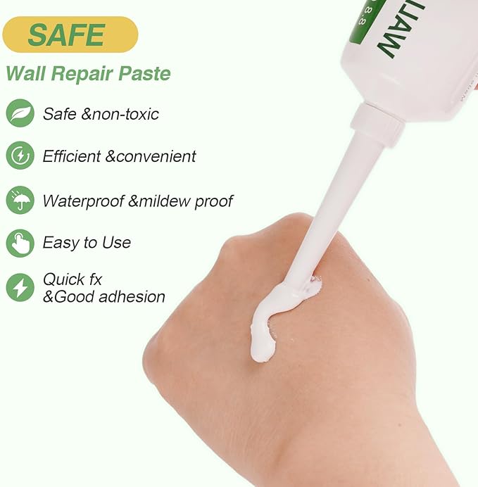- 【安全で実用的、そして環境に優しい材料】Spackle壁補修キットは、壁用接着剤、樹脂、炭酸塩コーティングで作られており、有害な成分を含まず、お子様、お年寄り、ペットにも安全です。防水性とホルムアルデヒドフリーで、ご自宅の装飾に完全に安全かつ効果的です。小規模な補修プロジェクトに最適です。