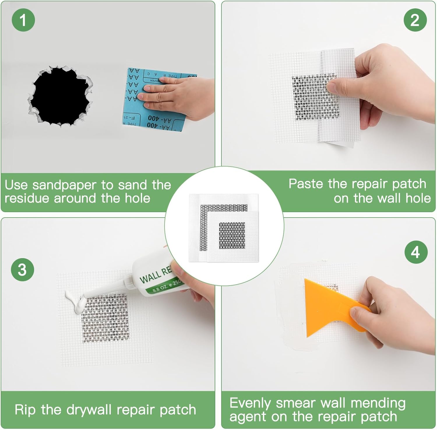 - 【速乾性、耐久性、完璧な補修】乾式壁補修キットは、強力な接着力、速乾性、耐ひび割れ性、防水性を備え、壁をより滑らかで耐水性に優れたものにします。パテは4時間で完全に乾燥します(天候によって異なります)。パテは強力で、損傷した壁の補修に迅速かつ簡単に解決策を提供し、プロフェッショナルな仕上がりを実現します。