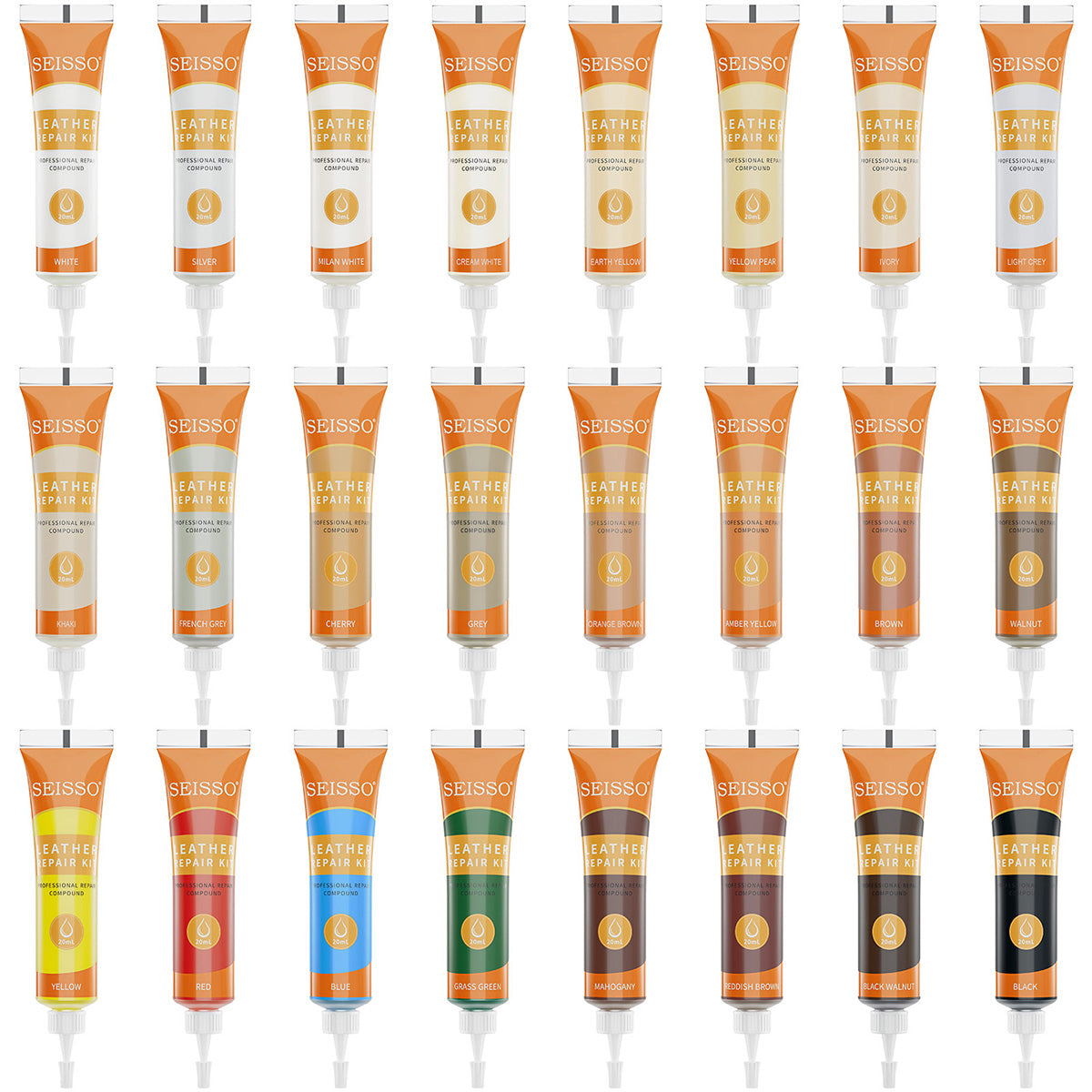 SEISSO 24色レザー&ビニール補修キット(ソファ、車のシート、靴、ジャケットなどに対応)