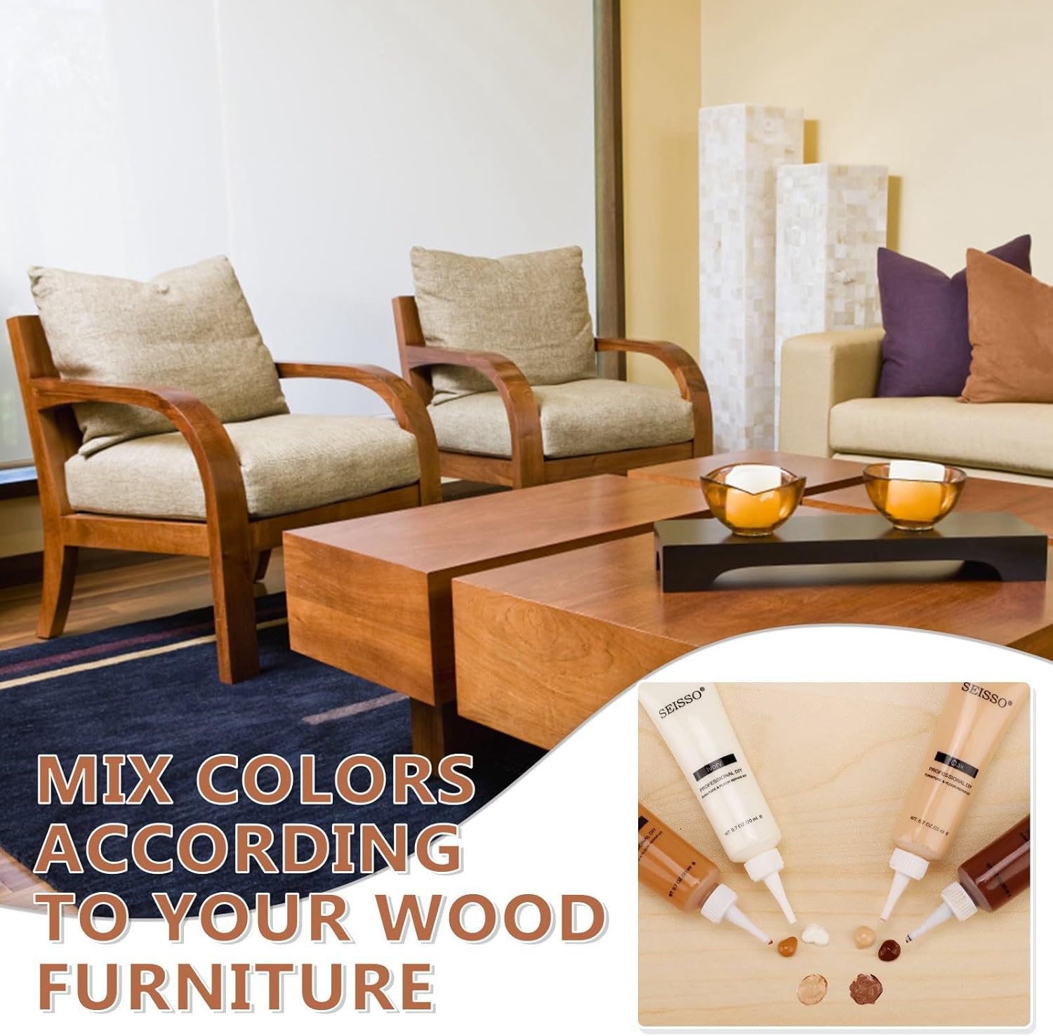 - 色を混ぜて、より正確に色を合わせることもできます。色が濃すぎる場合は、軽く塗って拭き取るだけで明るくなります。当社の高品質家具修理キットで、あなたの家具を蘇らせましょう!
