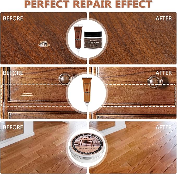 - 【使い方簡単】この速乾性木材補修キットを使えば、補修が簡単になります。傷んだ部分にウッドフィラーを塗り、余分なフィラーを削り取り、乾燥させてから研磨し、ウッドワックスで磨くだけで、まるで新品のような美しい家具に仕上がります。大きな穴やひび割れには、まずウッドパテを塗り、乾燥させてからウッドフィラーをご使用ください。