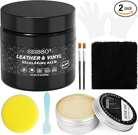 SEISSO ブラックレザーリカラーバーム&リペアキット(家具、ソファ、車のシート用)