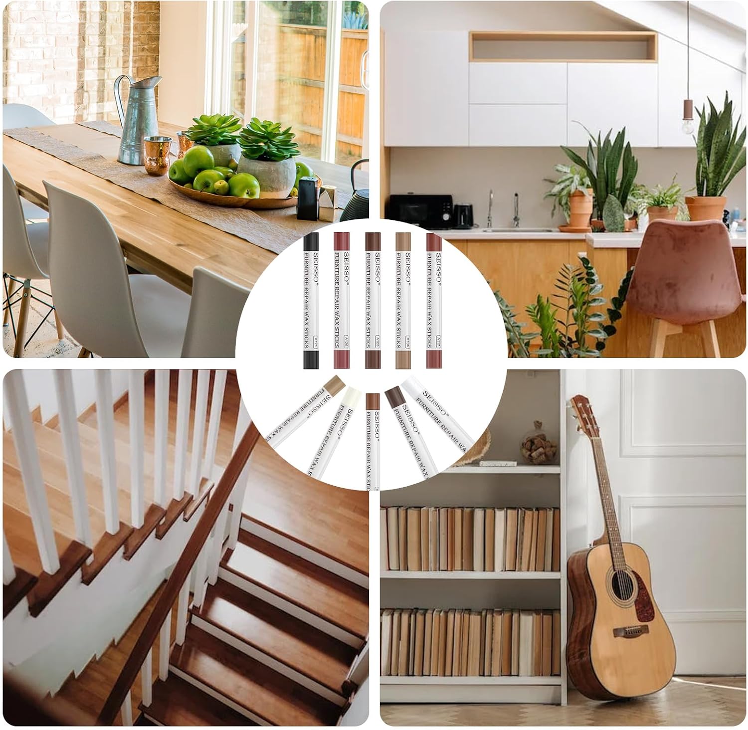 - 【幅広い用途】6本のホワイトタッチアップマーカーは実用的なツールです。ウッドスティックは、広範囲の欠陥、溝、穴、傷のある家具の修復に使用できます。また、木目調の床には専用のステインペンが使用できます。6本のクレヨンスティックは、テーブル、キャビネット、椅子、床、ドア枠など、様々な箇所に使用できます。