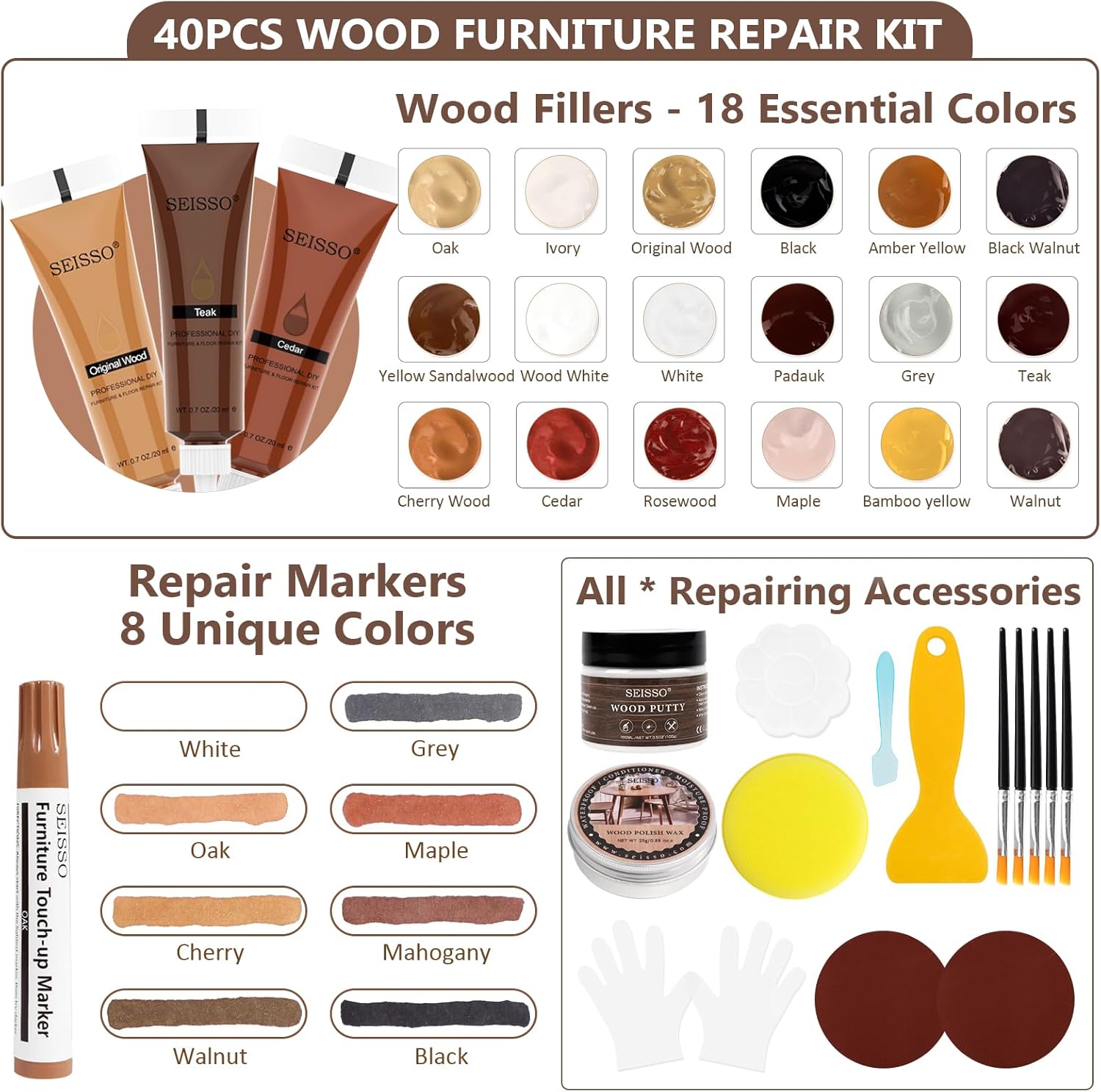 SEISSO 家具修理キット – 木材フィラー&マーカー 40個