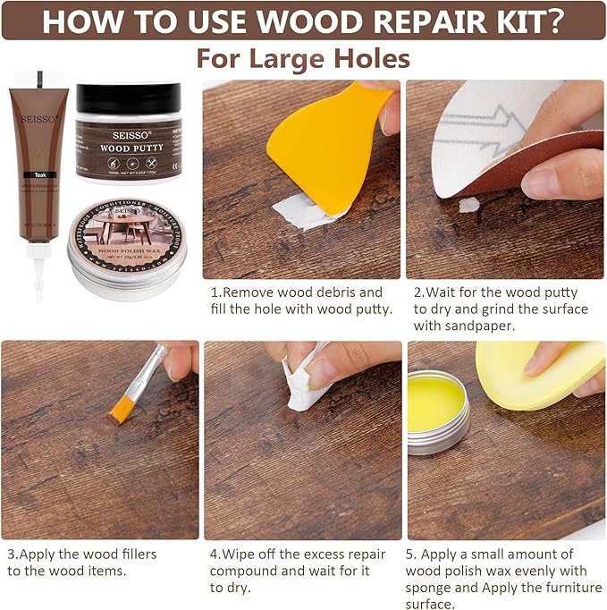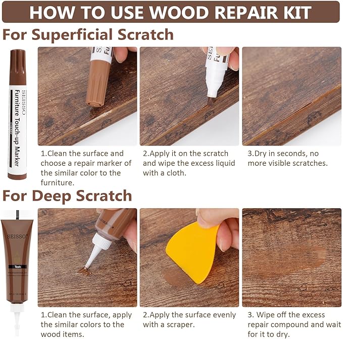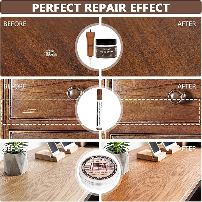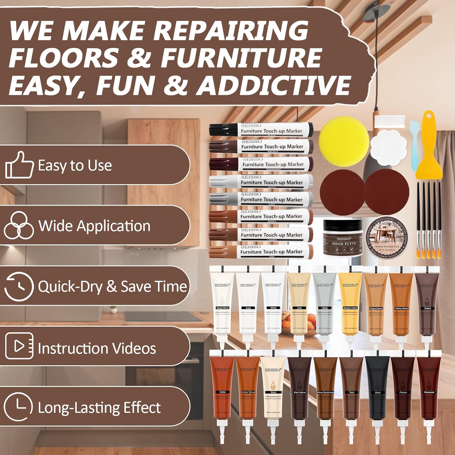- SEISSO の総合的な木製フローリング傷修復キットは、美しさを復元し、耐久性を向上させるように設計されており、木製家具を新品同様に蘇らせます。
