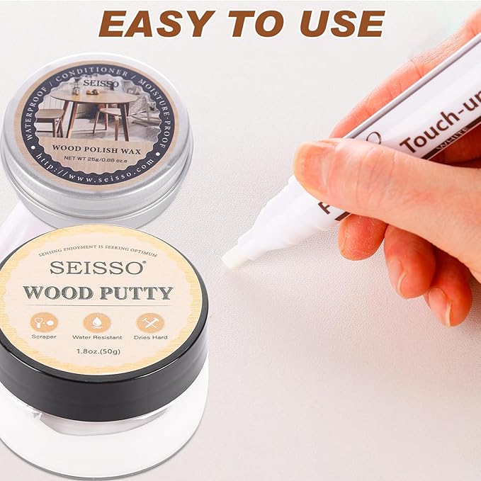 - 【豊富なカラーバリエーション】SEISSO 木材補修セットには、ブラック、グレー、ホワイト、マホガニー、メープル、オーク、チェリー、ウォルナット、チェスナット、バーントセナ、エスプレッソ、バンブーの12色の木材仕上げ用ステインマーカーペンが含まれています。12色の木製ペンマーカーは、一般的な木製家具の色に合わせて特別に開発されており、あらゆる修復ニーズに対応します。