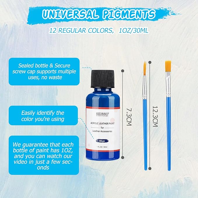 - ✅鮮やかで滑らか、そして鮮やかな発色:このアクリルレザーペイントセットは、ホワイト、ブルー、イエロー、ブラック、レモンイエロー、ブラウン、ライラック、グリーン、オレンジ、レッド、ピンク、パープルなど、豊かで鮮やかな色を取り揃えています。Seissoペイントは初心者にもプロにも最適です。あなたのカスタムシューズに最適です。
