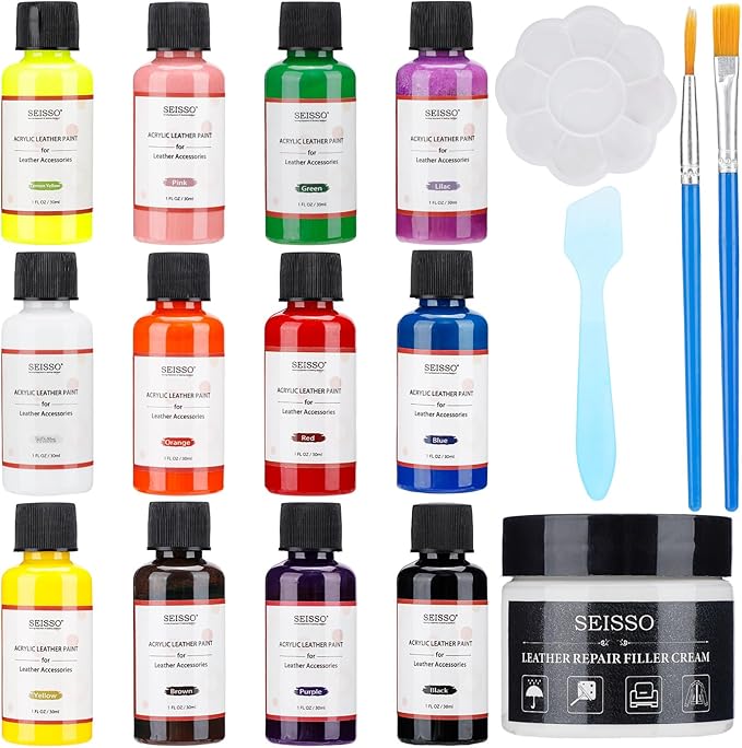 SEISSO レザーペイントキット – 靴の補修・補修用フィラー付き12色