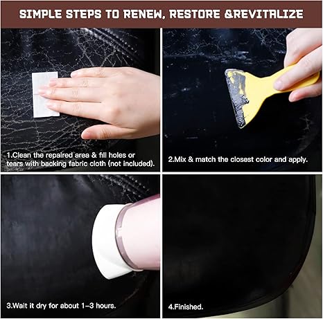 - 【優れた仕上がり】この家具用レザーリペアキットは、新旧の合成皮革、フェイクレザー、合成繊維、バイキャストレザー、PU、高級張り地など、あらゆる家具にプロフェッショナルな仕上がりをもたらします。傷、裂け目、裂け目、焼け穴、ひび割れ、剥がれ、再仕上げ、リフォームなど、あらゆる傷を簡単に修復できます。