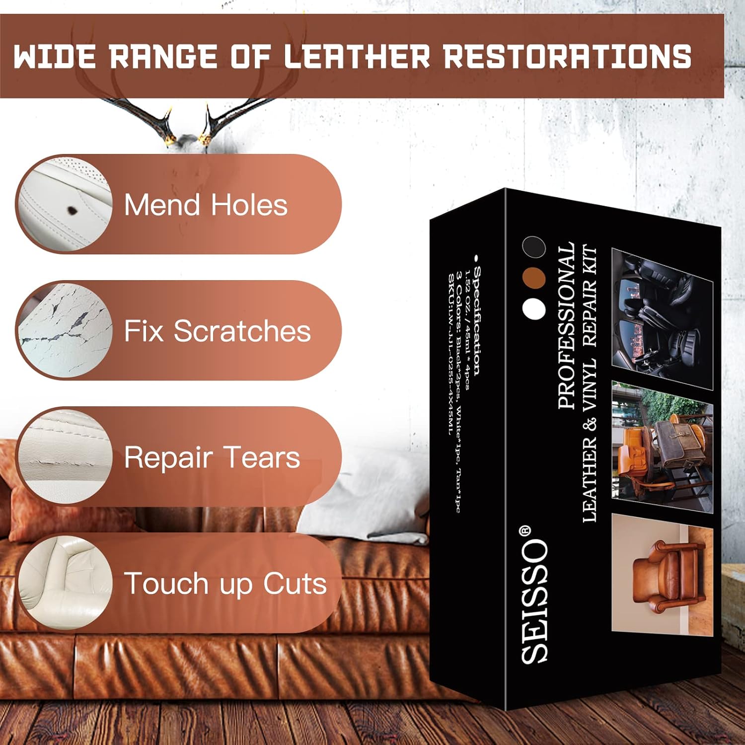 SEISSO ビニール&レザー補修キット(家具、車のシート、ソファ、ジャケット、財布用)