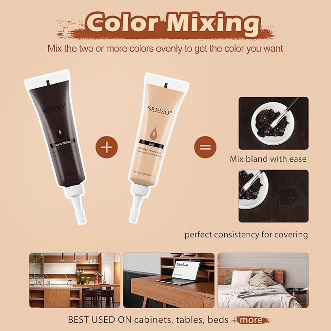 - 使い方が簡単:家具補修剤を傷、ひび割れ、または小さな穴に押し込み、テールスクレーパーで表面を滑らかにします。補修する家具に合わせて色を混ぜることができます。あらゆる種類の木製家具に優れた仕上がりを実現し、傷や汚れを素早く簡単に補修できます。