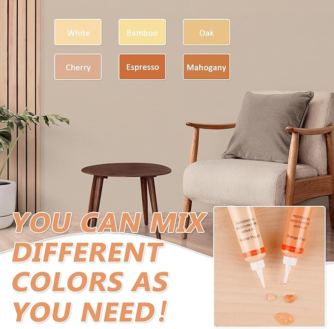 - 【 6色のユニークなカラーバリエーション】ホワイトオーク、ライトオーク、ナチュラルオーク、オーク、レトロオーク、ダークオークなど、家具に合わせてお選びいただけます。(ライトウォルナット、ナチュラルウォルナット、スパイスドウォルナット、ウォームウォルナット、ウォルナット、ブラックウォルナット)色を混ぜて、完璧な組み合わせを実現することもできます。長持ちで信頼性の高い補修効果で、プロ仕様の仕上がりを実現します。