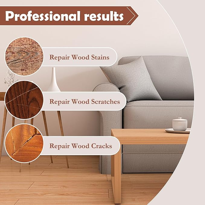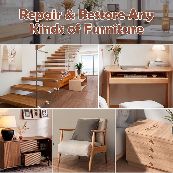 - 【幅広い用途】当社の家具修理キットは、完成した家具、床、ベッド、棚、キャビネット、テーブル、フレーム、ドアなどの一部の室内木工品の傷、欠け、ひび割れ、変色、小さな釘穴を修復できます。