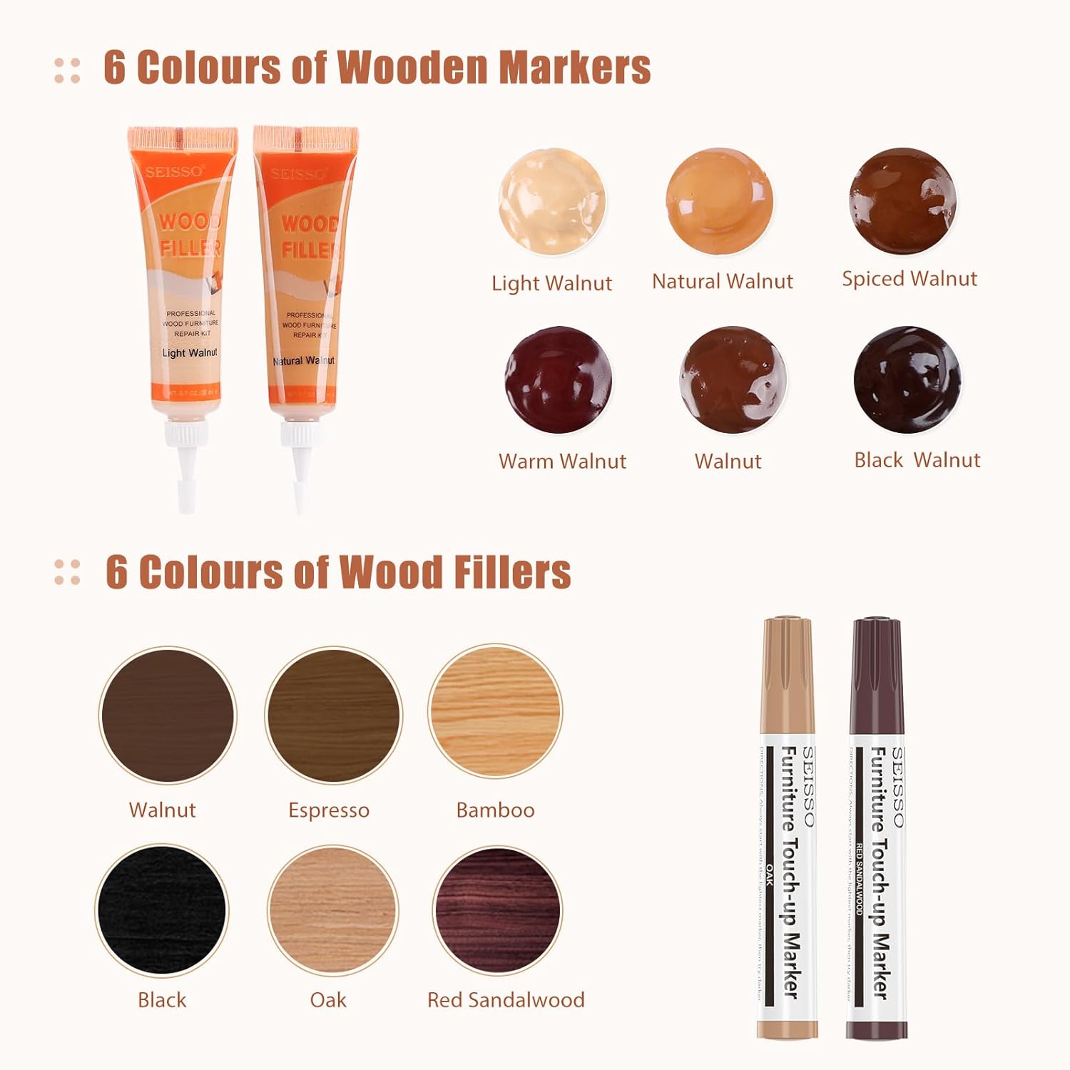 SEISSOP 木材補修キット – 家具修理用フィラー&マーカー 12個