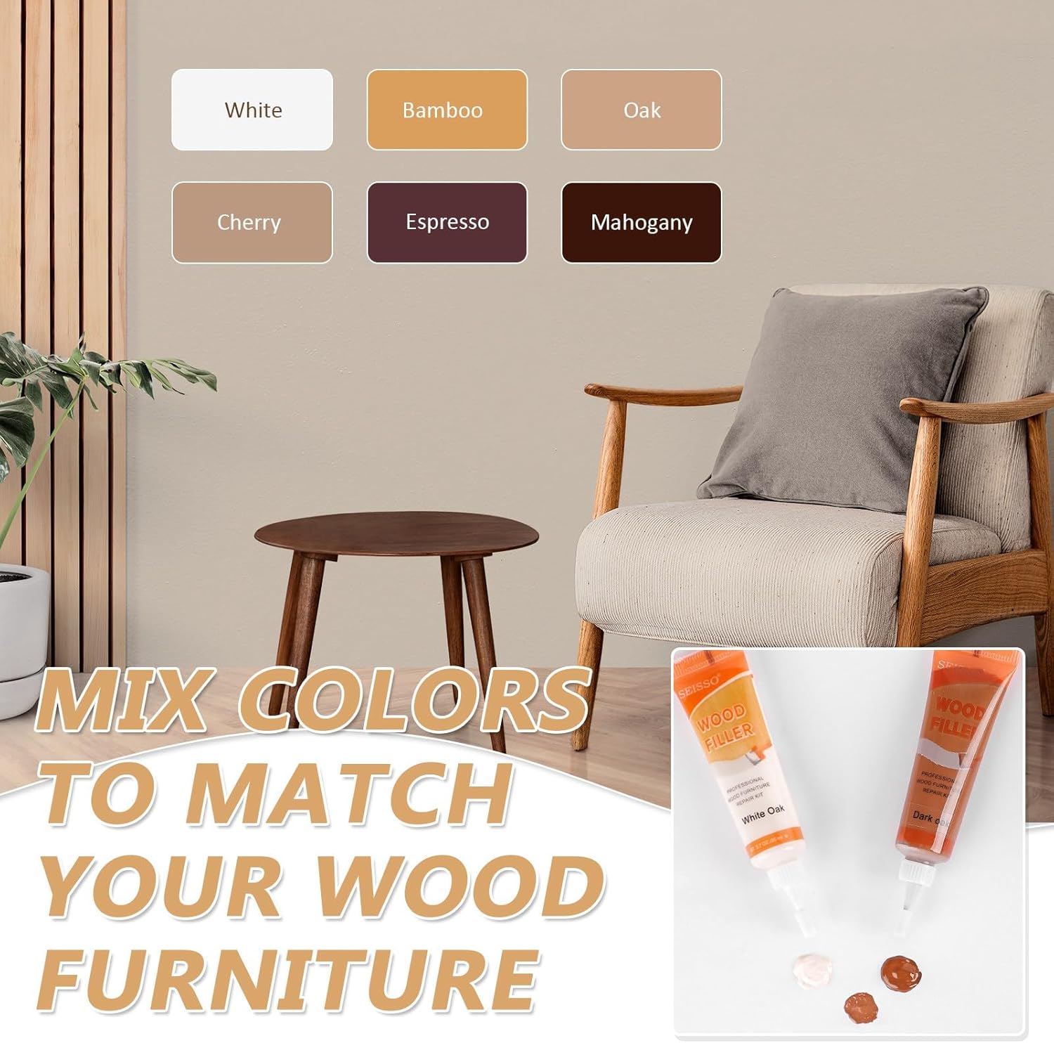 - 【幅広い用途】木製の床、ドア、テーブル、椅子、キャビネットなどの家具のひび割れ、穴、傷、変色の補修に最適です。補修後は、ヘアドライヤーで乾かすか、湿気を避けて2~3日間自然乾燥させてください。