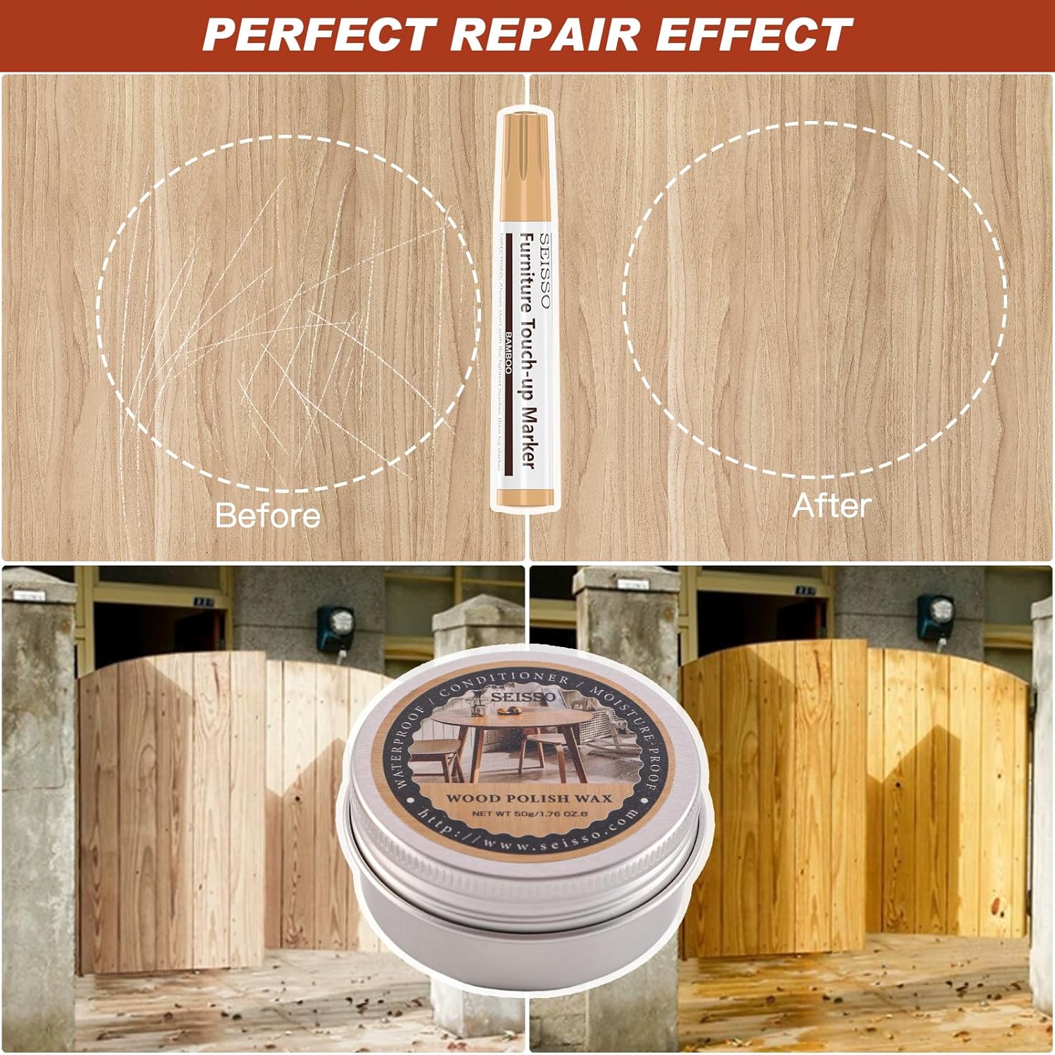 - 【 다양한 용도 】 저희 목재 수리 키트는 나무 바닥, 문, 의자, 기타, 캐비닛, 테이블, 침대 및 기타 목재 제품의 긁힘, 흠집, 변색 등 목재 가구의 결함을 수리하는 데 도움을 드립니다. 사용이 간편하고, 빠르게 건조되며, 방수 기능이 뛰어나고 오래 사용할 수 있습니다. 아름다운 집의 자연스러운 색상을 되찾는 데 이상적입니다.
